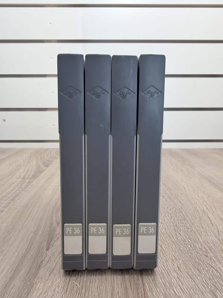 Set van 4 Agfa bandrecorder spoelen in 18cm formaat voor reel to reel bandrecorders. Twee spoelen bevatten nog tape, de staat van de tape is onbekend. Twee spoelen zijn leeg en direct opnieuw te gebruiken. Alle spoelen worden geleverd in originele Agfa Gevaert PE 36 opbergboxen, in zeer goede staat. Ideaal als reserve, voor het ordenen van je bandcollectie of voor dagelijks gebruik met een bandrecorder. De spoelen zelf verkeren in nette staat met lichte gebruikssporen. Garantie: geen garantie.