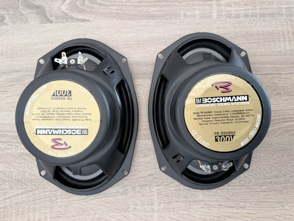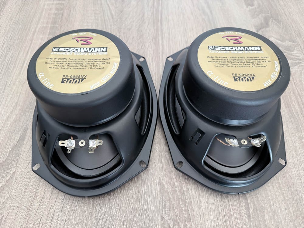 Set Boschmann 6×9 inch 3-weg auto luidsprekers, type PR-9968NX. Ideaal om het geluid in je auto in één keer flink beter te maken. De grote woofer zorgt voor strakke bas, de aparte mid en tweeter maken stemmen en details helder. Door de hoge belastbaarheid tot 300 watt kun je ze probleemloos combineren met een krachtigere autoradio of versterker. Nominale impedantie is 4 ohm, dus past bij de meeste systemen. Het gaat om NOS: nieuw, nooit ingebouwd. Geen garantie, wel een mooie kans op stevige, oude-school autosound.