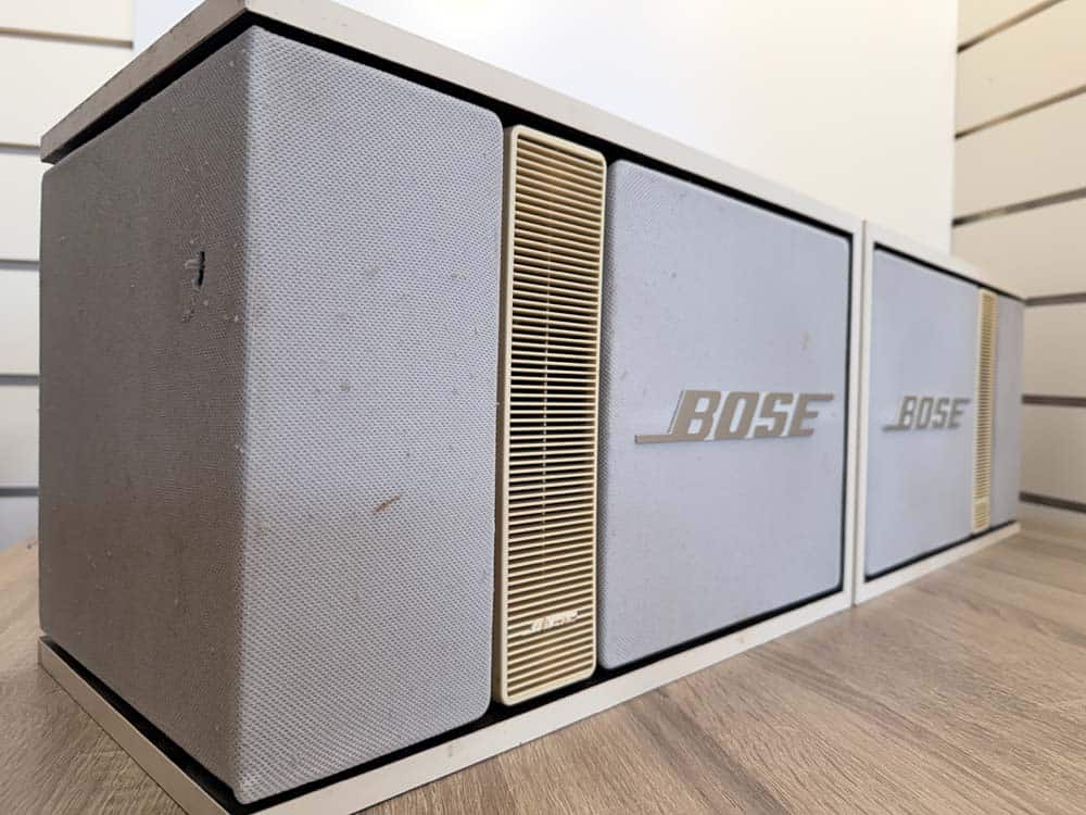 Set van 2 Bose 301 speakers met krachtig en ruimtelijk geluid. Technisch werken ze zeer goed en spelen ze helder en vol zoals je van Bose verwacht. De woofers en tweeters zijn netjes. Optisch zijn ze duidelijk gebruikt met slijtage en vlekken, zie foto’s. Perfect voor wie top geluid zoekt voor een scherpe prijs.