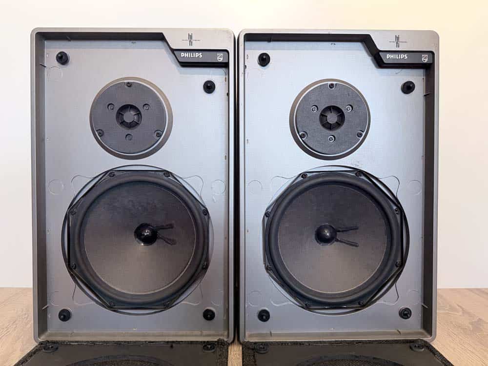 Mooie Philips HiFi speakers die verrassend vol en warm geluid geven. Technisch werken ze zeer goed en de drivers zien er netjes uit. Ideaal voor een vintage set met karakter. De achterkant is optisch minder netjes door oude bevestigingen, zie foto’s. Sterk geluid en direct speelbaar.