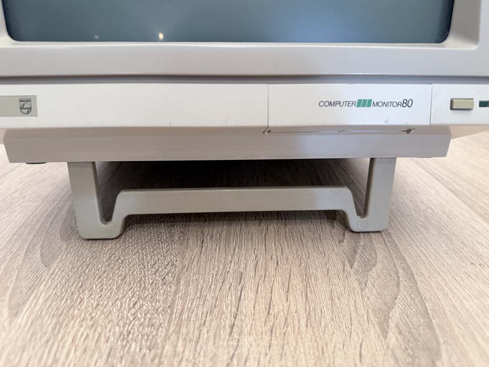 Zeldzame Philips Computer Monitor 80 met groen monochroom scherm. Deze vintage 12 inch CRT monitor werkt perfect en verkeert in zeer goede staat met slechts lichte gebruikssporen. Ideaal voor retro computers zoals Commodore systemen of vroege PC’s. Geeft een haarscherp groen tekstbeeld en is een echte blikvanger voor verzamelaars van klassieke computerhardware.