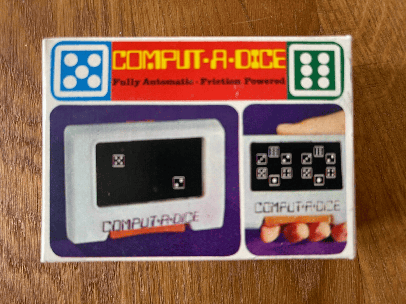 De Comput-A-Dice is een uniek stukje spelgeschiedenis uit de jaren 70, ontworpen als volledig automatische mechanische dobbelsteenroller. Dit zeldzame exemplaar is nieuw (NOS) en komt in originele verpakking (OVP). Met een simpele druk op de knop toont het display een willekeurige combinatie van dobbelsteenogen, aangedreven door een slim mechanisch systeem.